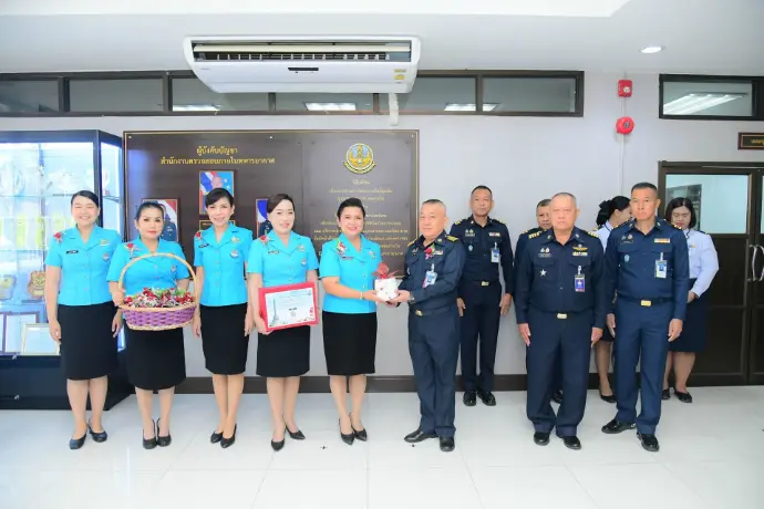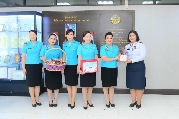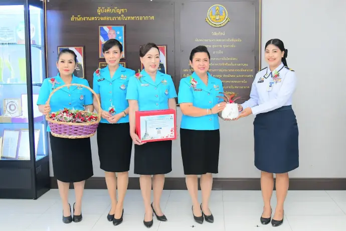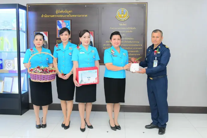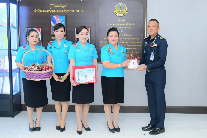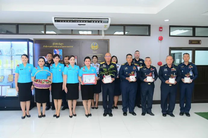 พลอากาศตรี วรพจน์ วรพิศาล ผู้อำนวยการสำนักงานตรวจสอบภายในทหารอากาศ ให้การต้อนรับ นาวาอากาศเอกหญิงวราภรณ์ เกิงฝาก อุปนายกสมาคมคู่สมรสทหารอากาศ พร้อมคณะกรรมการบริหารสมาคมคู่สมรสทหารอากาศ เดินทางมาจำหน่ายดอกป๊อปปี้ เพื่อร่วมรำลึกถึงคุณงามความดีและความเสียสละของทหารผ่านศึก เมื่อวันอังคารที่ ๓ กุมภาพันธ์ ๒๕๖๙ ณ บริเวณโถง ชั้น ๑ สำนักงานตรวจสอบภายในทหารอากาศ