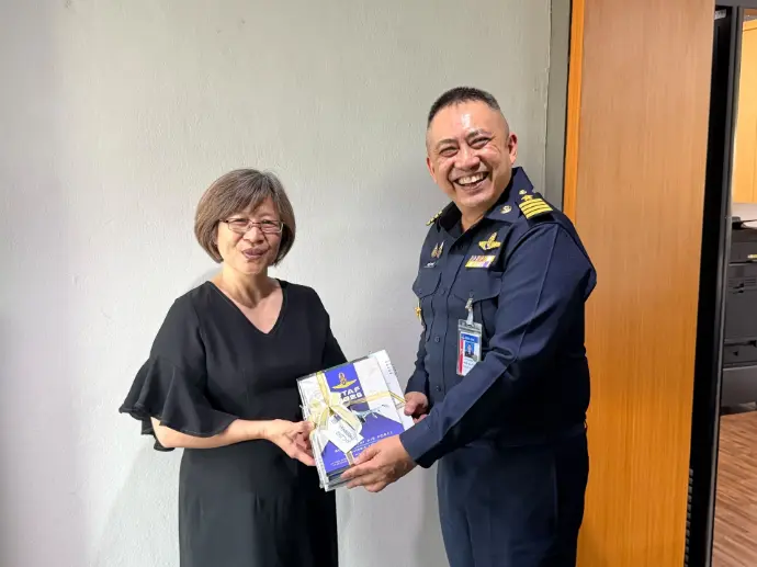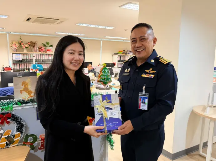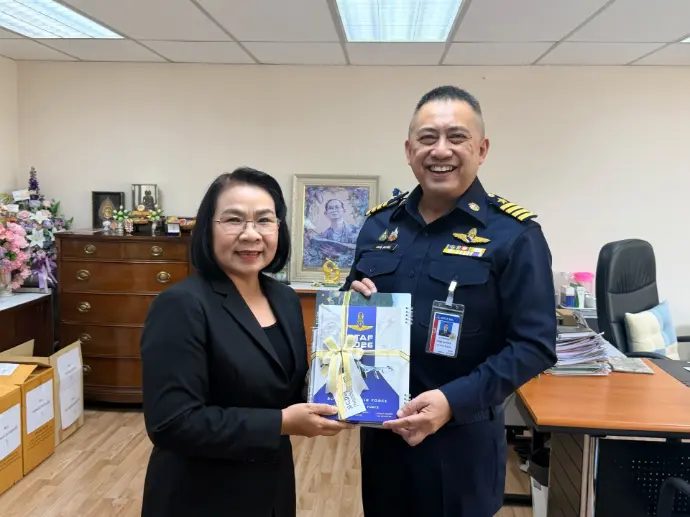 พลอากาศตรี วรพจน์ วรพิศาล ผู้อำนวยการสำนักงานตรวจสอบภายในทหารอากาศ มอบหมายให้ นาวาอากาศเอก ภคณัฐ ศุขะพันธุ์ รองผู้อำนวยการสำนักงานตรวจสอบภายในทหารอากาศ พร้อมด้วยข้าราชการสำนักงานตรวจสอบภายในทหารอากาศ เดินทางไปสวัสดีปีใหม่ พ.ศ.2569 พร้อมกับมอบบันทึกประจำวันกองทัพอากาศ และปฏิทินตั้งโต๊ะ ปี 69 ให้แก่ คุณ แพตริเซีย มงคลวนิช อธิบดีกรมบัญชีกลาง